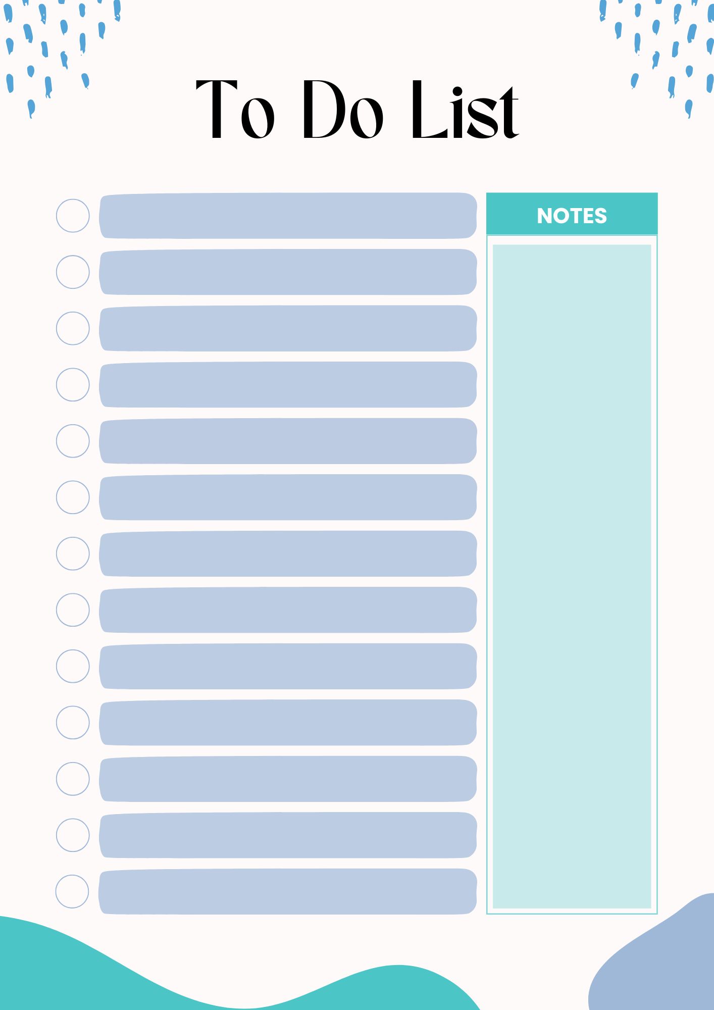 A simple to do list, with multiple shades of blue - you can use this daily/weekly to do list to keep track of everything - so you can live stress free!
