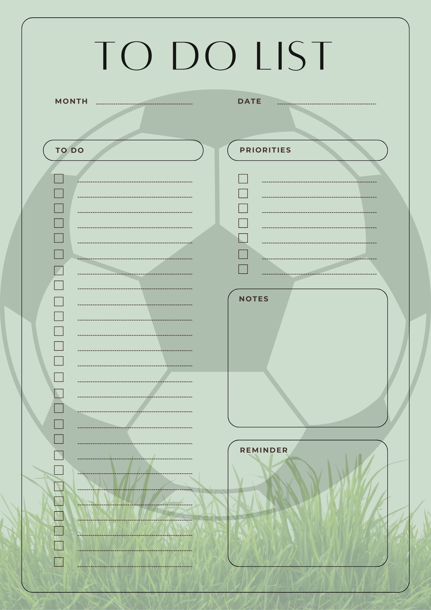 A football themed to do list, with grass detail - you can use this daily/weekly to do list to keep track of everything - so you can live stress free!